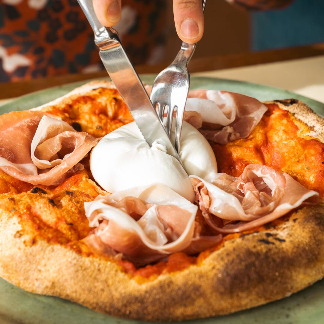 polpa di pomodoro, prosciutto crudo Berico Euganeo e burrata pugliese.