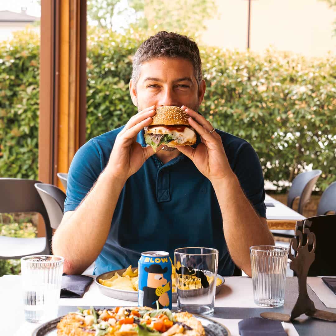 Hamburger di manzo 200g, zucca al forno, morlacco del Piave, speck trentino, insalata iceberg.